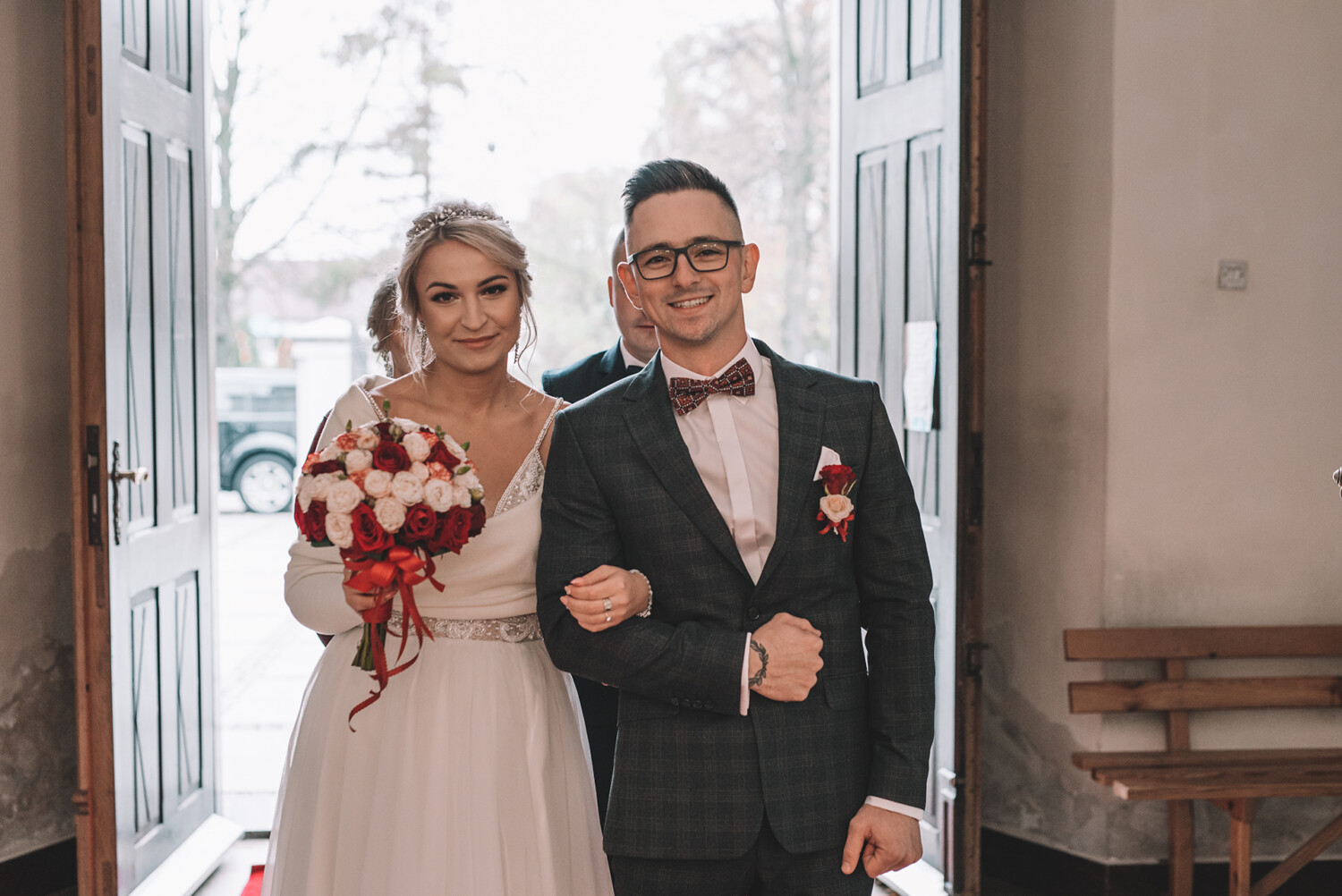 Wesele, ślub Czasy pandemi to niestety trudny okres dla każdego. Szereg obostrzeń, odwołane imprezy, wesela. Dla tej pary to również był trudny czas. Dzięki wytrwałości w końcu udało się połączyć ich węzłem małżeńskim. Od tego momentu są mężem i żoną. Ich wyjątkowa i klimatyczna sesja poślubna jest do obejrzenia w osobnym wpisie [Sesja poślubna].Jeżeli chcesz być na bieżąco z informacjami na naszym fanpage zajrzyj TUTAJ