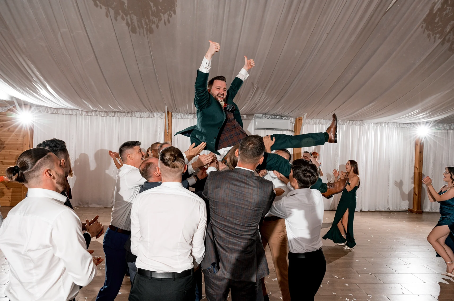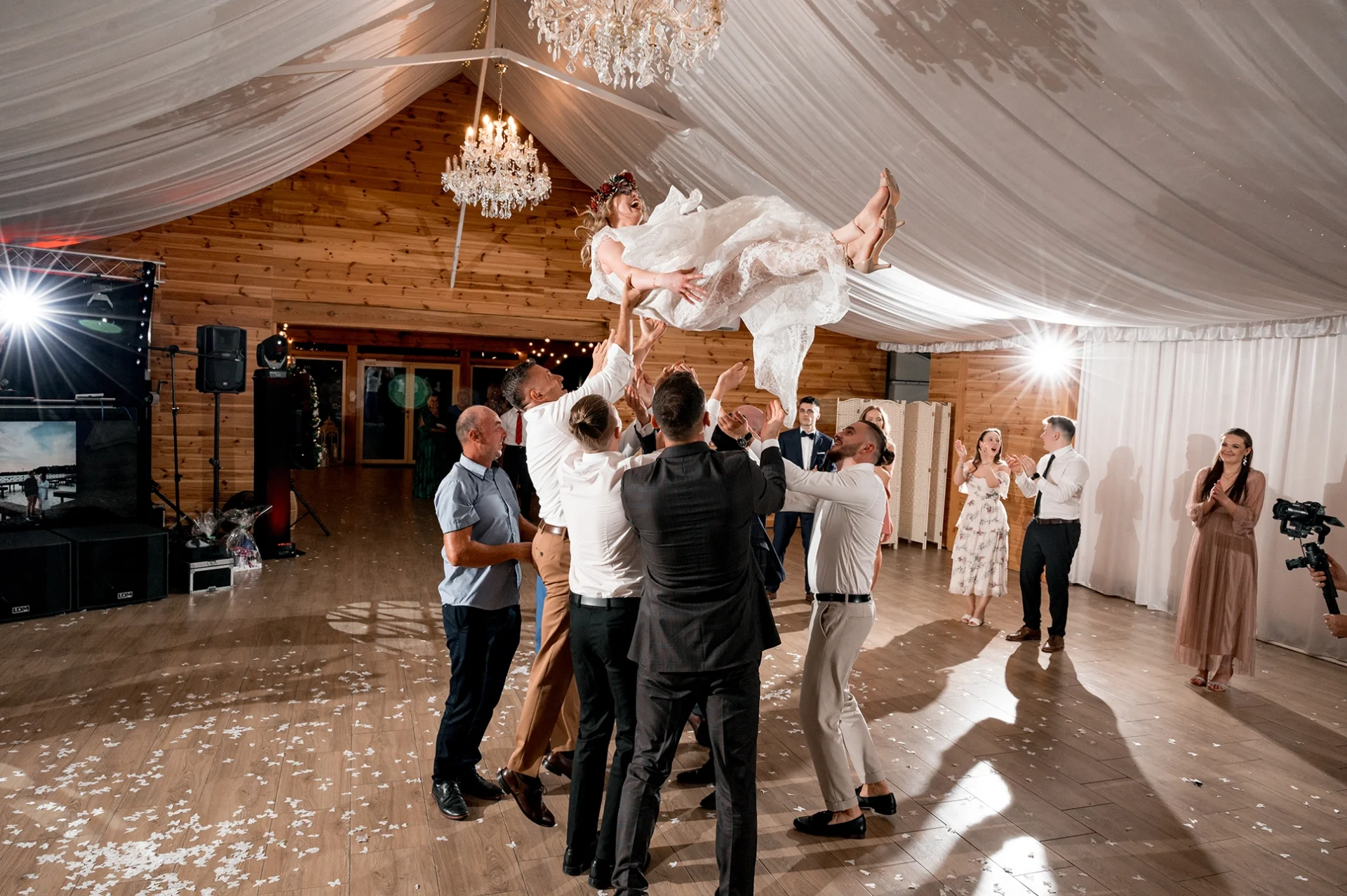 Kiedy zapadł zmrok, namiot rozbłysnął tysiącem światełek, tworząc niepowtarzalny nastrój do pierwszego tańca i zabawy. W efekcie parkiet był pełny aż do rana.